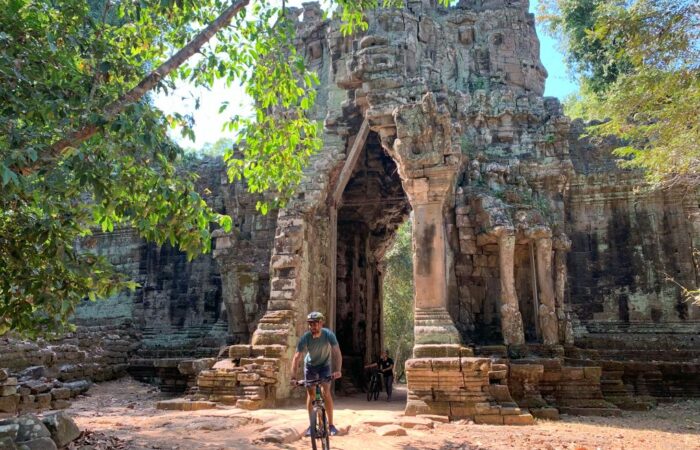 You may choose to rise early today to catch the awesome sight of the sun rising behind Angkor Wat’s five carved towers, then return to the hotel for breakfast. After breakfast, we cycle to the main circuit road and just as we enter Angkor Thom, we leave the road and spend the rest of the day on charming, quiet trails through these majestic structures. We visit The Bayon, famous for its serene faces, we continue to Baphoun and Phmeanakas then the Elephant Terrace and Terrace of Leper King. We then continue to our ride to Ta Prohm, made famous by the Hollywood blockbuster “Tomb Raider,” and Srah Srang.